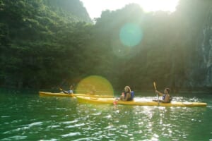 10:30 We will stop at Dark & Light Grotto in Lan Ha bay for kayaking. At here, we will have chance to get in touch with the nature. It’s such a peaceful place that you can hear yourself breathing. This is also the natural habitat for monkey, goats and seabirds. If we are lucky, we might see them at their daily basis.